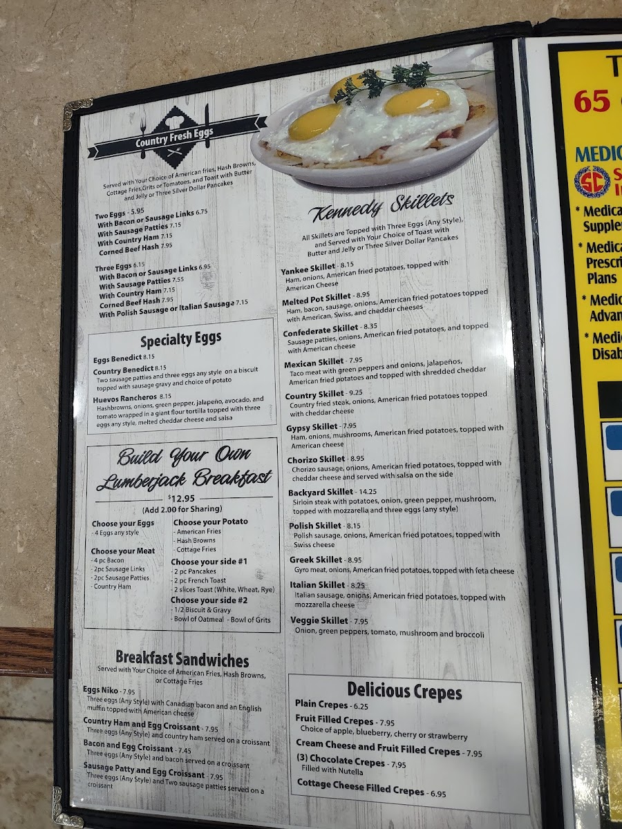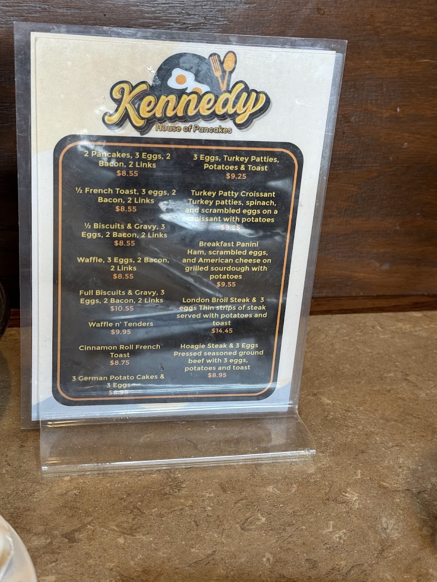 Kennedy House of Pancakes (K-Hop) is a standout family and breakfast restaurant nestled in Hammond, Indiana. Their menu shines with classic American breakfast staples, offering generous portions that satisfy hearty appetites. Signature dishes like the 3 Eggs Hoagie Steak, Waffles with Eggs and Bacon, and their famed Banana Pecan Caramel Pancakes create a comforting yet elevated dining experience. The daily specials, such as the London Broil with eggs and potatoes, showcase a versatile menu that draws praise for flavor and value.